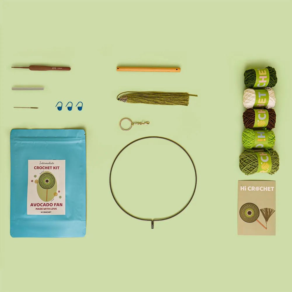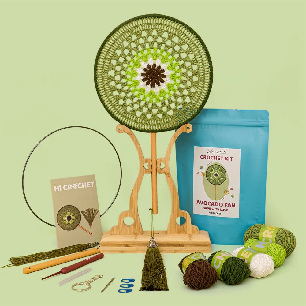 Our Avocado Fan Crochet Kit is a creative and vibrant DIY project designed for craft enthusiasts with some crochet experience, offering a moderate level of difficulty. With this kit, you can easily create a lifelike, brightly Styleed avocado-shaped fan, adding a unique charm and a touch of freshness to your summer.
