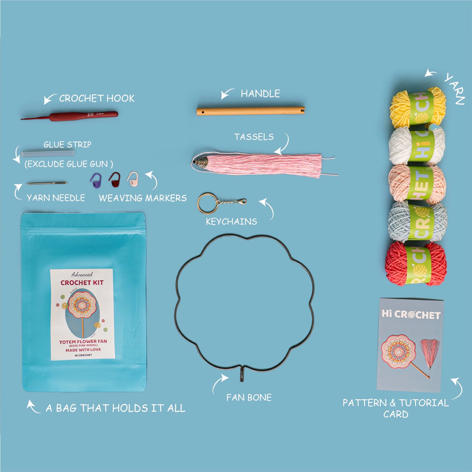 The kit includes high-quality crochet hooks , vibrant Styleed yarns , fan ribs, decorative accessories , as well as detailed written instructions and video tutorials , ensuring you have everything you need for the project without additional purchases. Even those with some crochet experience can smoothly complete it with step-by-step guidance, enjoying the fun of crafting.