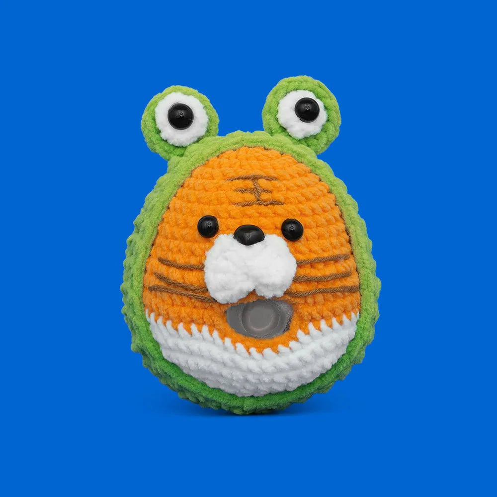 The Press Bubble Tiger Crochet Kit is a bold and playful project that brings out the wild side of your creativity! This fierce yet adorable tiger features bright orange and white stripes, a fluffy snout, and a fun green frog-like hood with big, expressive eyes—blending whimsy with charm. The interactive bubble press at its center adds a unique twist, making it a delightful and stress-relieving companion. Perfect for crafting enthusiasts of all levels, this kit comes with everything you need to crochet this one-of-a-kind tiger. Bring home this little king of the jungle and let your crochet skills roar with cuteness!